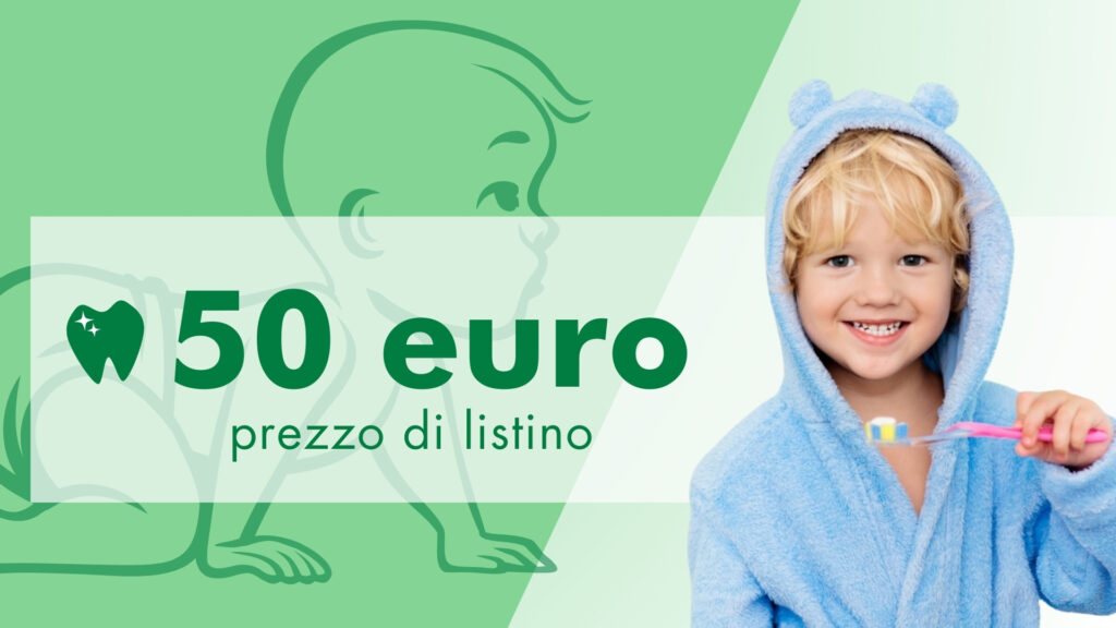Il Pacchetto Bambini comprende una visita di controllo, con un momento di avvicinamento alla poltrona per favorire comfort e tranquillità del bambino dal dentista, una lezione di igiene orale e alimentare per imparare a prendersi cura correttamente di denti e gengive, un’applicazione topica di fluoro per rinforzare lo smalto e prevenire la carie. È inoltre previsto, quando indicato, l’esame ortopantomografico delle arcate dentarie (dai 6 anni in su) e una seduta di igiene orale professionale, se necessaria.
